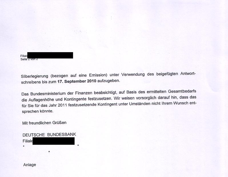 das heute ein Schreiben mit genau dieser Ankündigung der Reduzierung des Silbergehaltes gekommen sei.