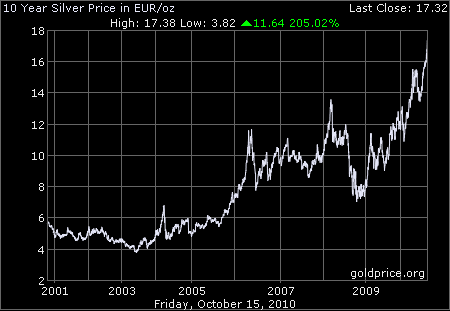 Historisch betrachtet, war aber der Kauf von Silberzehnern, 10 ?uro Münzen, bis Oktober 2010 aber eine schlechte Investition in Bargeld gewesen.