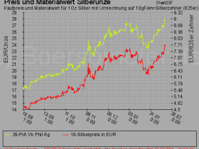 Schau ich mir auf der Hauptseite nur mal den Preis für den Kilobarren an, der dort momentan mit 959,- € steht, so fehlt wohl nicht mehr viel, das es sich lohnt 100 GrünspanAdler hinzulegen anstatt solch einen Kiloquader.