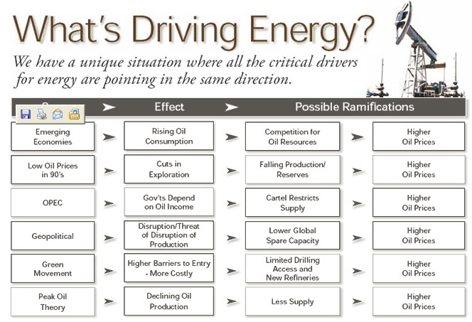 Meine Anlagephilosophie ist langfristig darauf ausgerichtet, dass sich Energie in den nächsten Jahren deutlich verteuern wird (peak Oil) und die Edelmetalle sehr viel höher bewertet werden (Fiat Money).