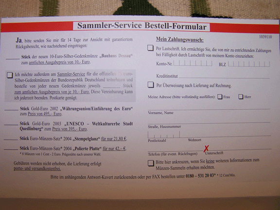 Ich werde einfach mal dort direkt unter der Faxnummer bestellen und dann seh ich ja, ob ich Silber bekomme.