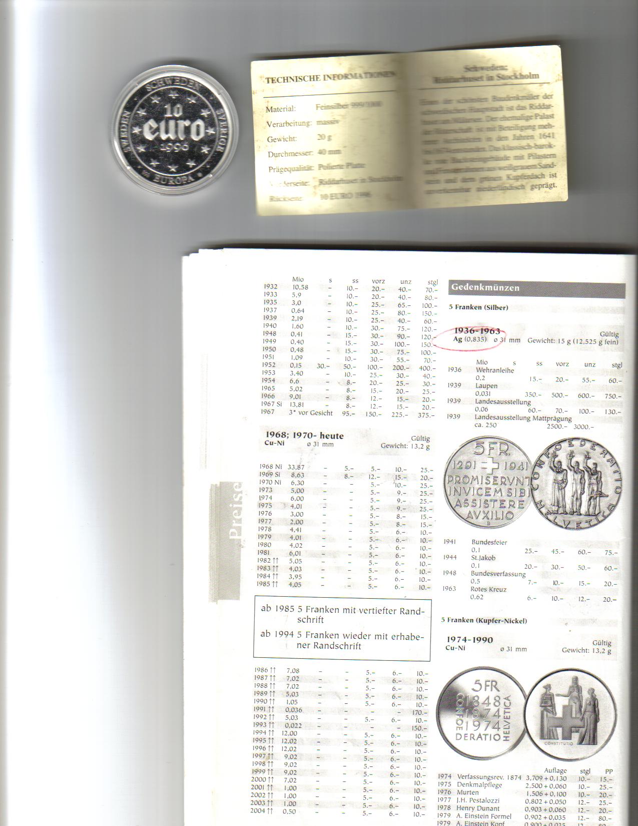 Rein rechnerisch ist die 10 eur Münze im Vorteil (0.60 eur/g anstelle 0.75 eur/g) , aber ich denke, dass der SFr. auch noch gewisse Vorzüge/Sicherheiten zu bieten hat.