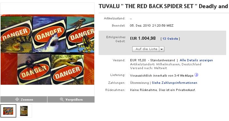ja, ich auch, das Ding ist nun wirklich wertstabil bis weiter steigend, das hätte ich so nicht erwartet. Ich sprach da am Samstag mit ner australischen Sammlerin drüber und die war der Auffassung das dies auch so bleiben wird. Nur welchen Wert hat denn nun eine komplettes Set, wenn man es hier verkaufen will, was denkt ihr?
