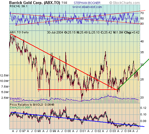 Kein Wunder also, dass die Aktienkurse der Goldförderer vom Kap deutlich anzogen, als die südafrikanische Notenbank vor einigen Tagen völlig überraschend die Leitzinsen senkte und der Rand daraufhin spürbar nachgab. Sollte der Rand gegenüber dem Dollar weiter abwerten, könnten die Minenaktien wesentlich höhere Kurse erreichen - vor allem dann, wenn gleichzeitig der Goldpreis steigt. In einem solchen Fall achten die Analysten und Investoren verstärkt darauf, welche Mengen an nachgewiesenen Reserven die einzelnen Unternehmen besitzen, und da schneiden die Südafrikaner im internationalen Vergleich äußerst gut ab: Bei Anglogold schlummern noch etwa 84 Millionen Unzen Gold im Boden, bei Gold Fields sind es 79 Millionen, bei Harmony 62 Millionen und bei Durban knapp 16 Millionen.