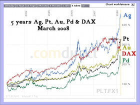 PPS: Vergleich der 4 wichtigsten Edelmetalle mit dem DAX.