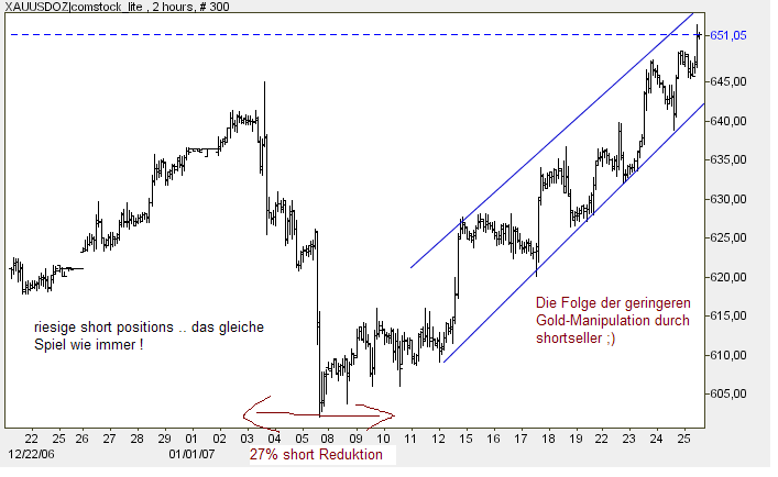 Merkt ihr es auch? Es liegt so ein Knistern in der Luft. Gleich haben wir die 650 Dollar/Unze gepackt. Sobald der Widerstand durchbrochen ist, gehts Richtung 675 Dollar/Unze.