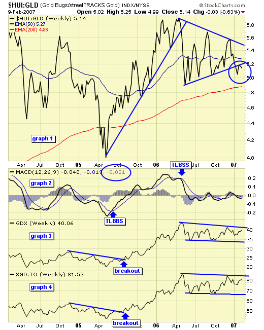 ".... It would not be surprising if 2007 is the year that the gold miners finally exhibit the performance they showed early in the bull market where, during a climate of economic contraction they were about the only stellar performers on the planet. A break on the weekly chart and a shift to out-performance vs. the metal will be a strong clue...." 8)
