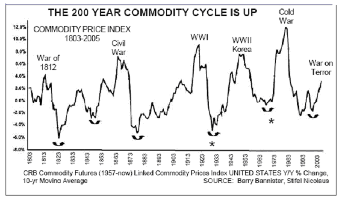 History has shown that all major bull-markets in commodities have coincided with rising political tensions and war (Figure 1). In other words, whenever shortages in natural resources caused prices to rise, nations did everything in their power to secure their share.