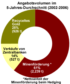 So grob gerechnet mit den Bedarf der da ist sind noch fuer 45 Jahre Gold auf der Welt ohne neue Produktion.