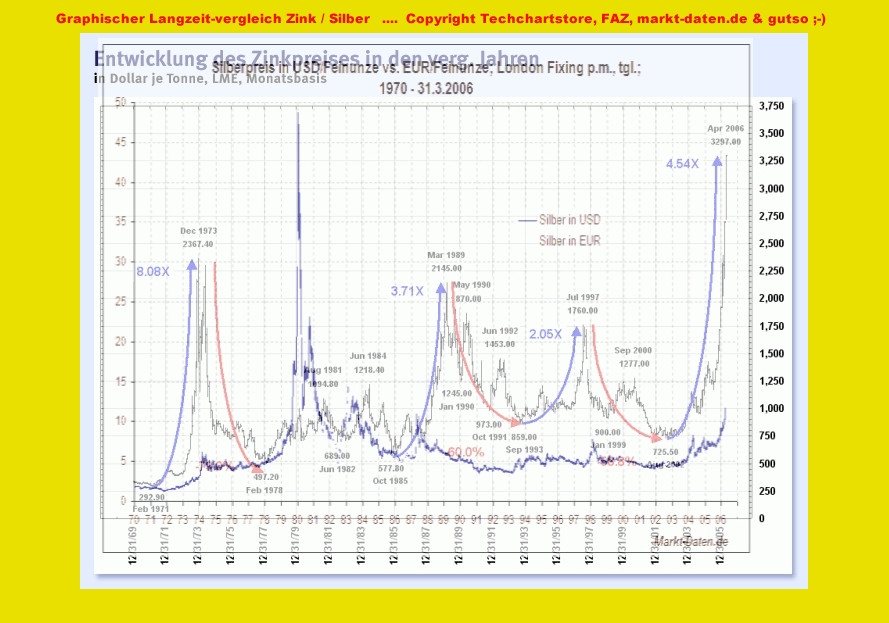 Man kann daran sehen, dass Zink sich in der wilden Spekulationsphase Anfang der 80er bei den Edelmetallen (übrigens auch bei Platin & Palladium, sowie Rhodium!) nicht in einer Hausse befand ... .