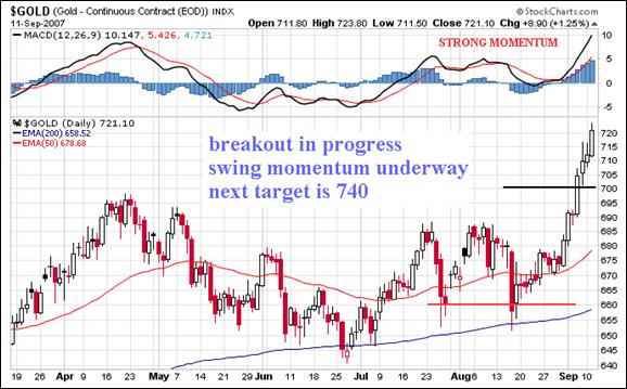 "It should be noted that $700 gold is a very crucial level; we have only closed above $700 six times in 26 years. Four were in May 2006 and now 2 are in 2007. We are only $18 away from a 26 year high and judging by the HUI nobody cares too much. These are very, very significant developments and it is bullish that no one is paying attention."