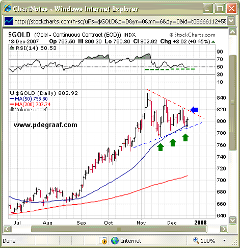 "...Since I posted my last article, gold has made several 'higher lows', a sign that the bull market is alive and well. Admittedly the HUI, XAU and GDM, went lower than I expected. In retrospect I blame the various ETF's for drawing money away from the gold and silver stocks. The GLD now has over 19,800.000 ounces of gold in back of it. Even during pull-backs in gold, while investors are dumping their gold stocks, fresh money keeps moving into the GLD.