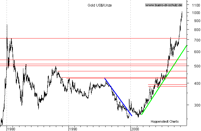 Ich sehe die Gefahr, dass die schlechte Minenperformance in vielen Titeln eher ein Zeichen für eine ausgeprägtere Korrektur der EM-Preise darstellt, eine Korrektur, die durchaus länger laufen kann als viele hier annehmen, nämlich analog 2006 bis zu 1 1/2 Jahren! In so einem Fall stehen dann noch einmal massive Verluste mit Minen ins Haus. Bei den Südafrikanern wäre dann sogar ein Rückfall auf die 1998-er Ausgangsniveas nicht ausgeschlossen. ![]()
