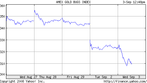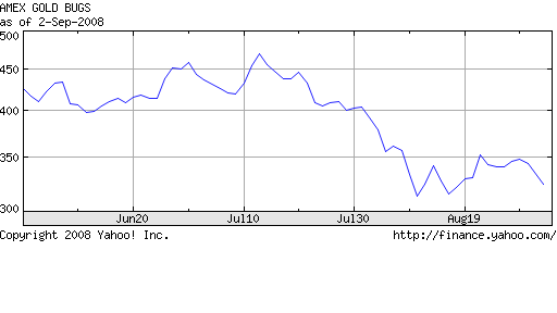 Der Phsycho Krieg geht schon seit mitte Juli von HUI 460 runter , 33 % bestimmt, die Volumen werden schon kleiner, aber mit ein paar Dollar und wenig Aktien shorten die heute eine Anaconda ANX.TO z.B. um 17%.