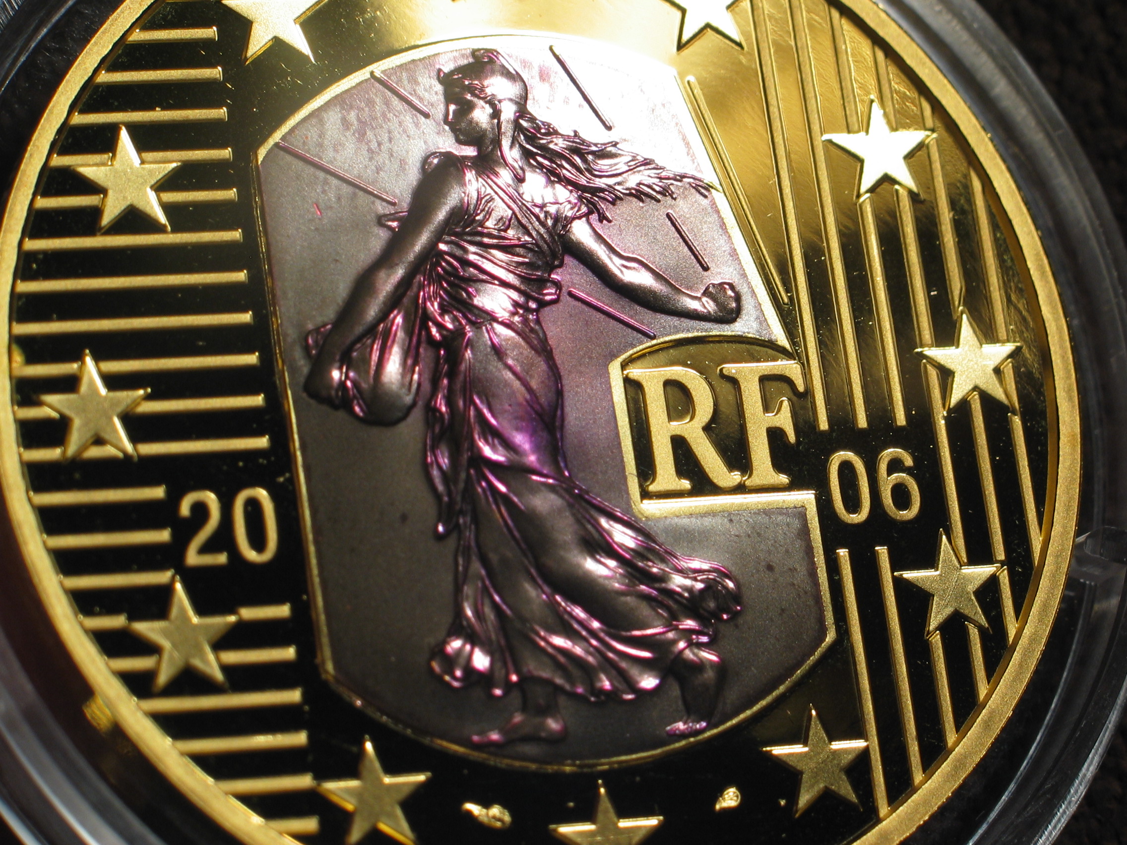 P.S. Farbmünzen: was haltet ihr den vom blauen oder lila Gold Frankreich, gerade die ersten 2005 Europa habe ich mal vor der Linse gehabt und fand sie wirklich schön. Die Semuse lila, die ich habe, die sieht aber wirklich grässlich aus. Verklekstes und ausserdem aysmmetrisches Farbfeld.