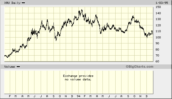 im anhang als vergleich mal ein chart von 1993-1995 des XAU. und das schaut wie eine umkehr aus oder? schulter kopf schulter...aber was geschah? 1 jahr später notierte der XAU fast 50% höher. also nix mit umkehr.