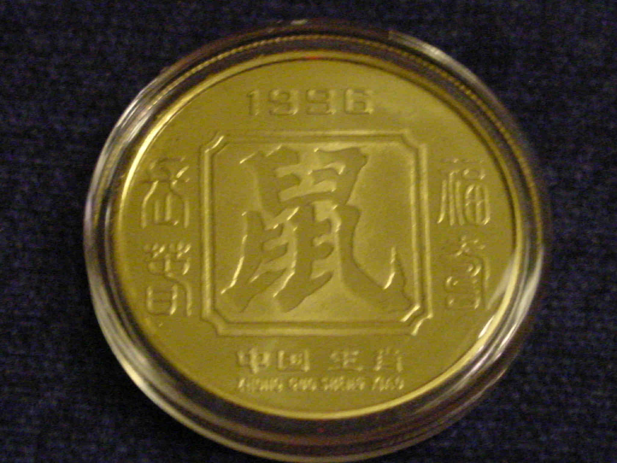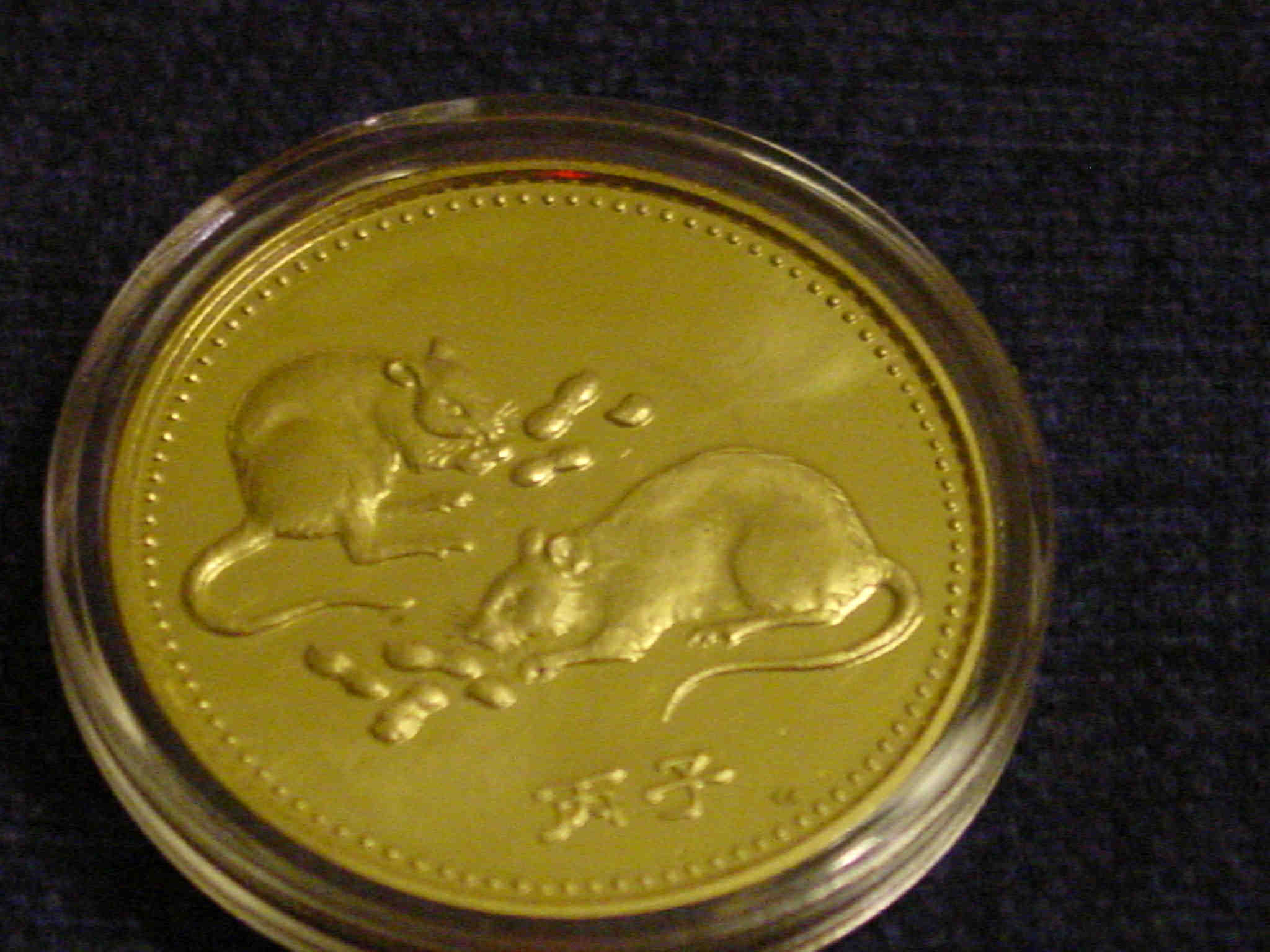 Das Motiv ist bei der einen Münze zwei Ratten, die an ein paar Erdnüssen knabbern. Auf der Rückseite sieht man deutlich das Jahr 1996,
