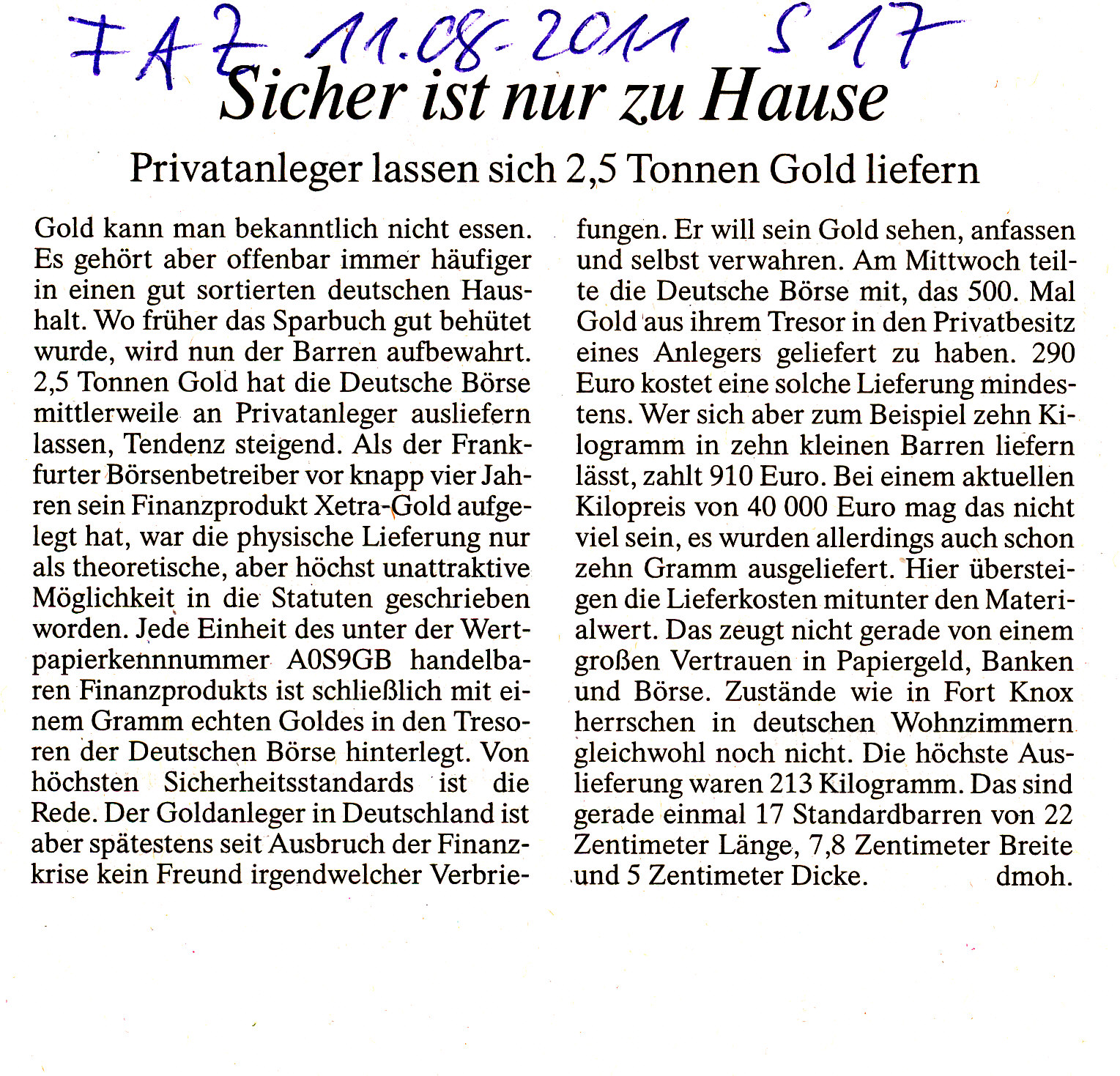 Artikel aus der Frankfurter Allgemeinen Zeitung 11.08.2011 Seite 17: