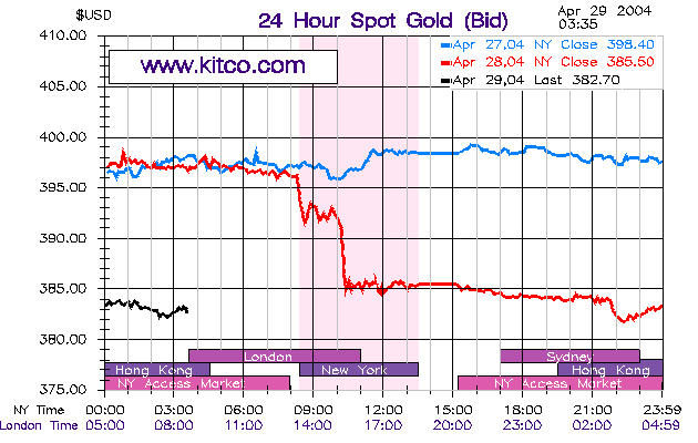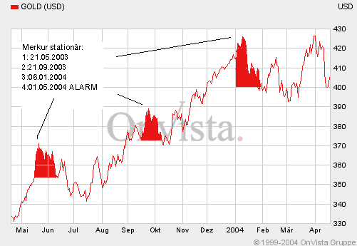 Wenn meine Recherchen richtig sind - und ich gehe fdavon aus das sie es sind, so wird der Goldpreis am 01.Mai 2004 kurzfristig einen Einbruch erleiden. Wie komme ich auf diese Idee??