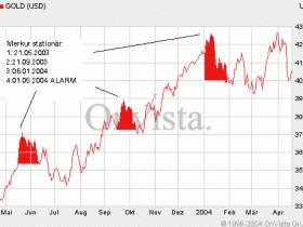 Ich habe mir erlaubt diese Tage an denen der Goldpreis drehte astrologisch zu untersuchen. Das Ergebnis war: Das Gold immer dann aus einem Top drehte, wenn der Planet Merkur `stationär´ ( rückläufig ) war. Dies war an folgenden Tagen der Fall: