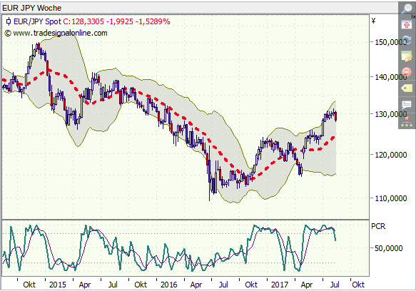 Der USD ist auch eine Krisenwährung.Wenn man die Wochencharts EUR/USD und EUR/JPY vergleicht, dann fällt auf, dass der EUR zum JPY stärker gefallen ist als zum USD.