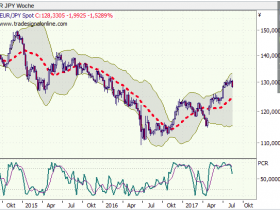 Der USD ist auch eine Krisenwährung.Wenn man die Wochencharts EUR/USD und EUR/JPY vergleicht, dann fällt auf, dass der EUR zum JPY stärker gefallen ist als zum USD.