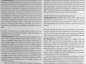 Auf der ersten Edelmetallmesse in München im November 2005 sprach ich mit einem Münzhändler aus Zürich über genau dieses Thema. Er meinte dazu, daß in der Vergangenheit nach 2 bis 2,5 Jahren das Schlimmste immer vorbei war und man für eine 7,4 Gramm Goldmünze, Zitat 'Drei Tage Futter' bekommen würde. Mit 200 Münzen sollte man also durch diese Zeit hindurchkommen. Ich persönlich kann nicht ganz glauben, daß sich die wirtschaftlichen Ungleichgewichte, die sich nunmehr über Jahrzehnte aufgebaut haben, in nur zwei oder drei Jahren ausgelichen haben und abgebaut haben werden. Ich denke, daß eine längere Zeit der Trübsal über die Alte Welt hereinbrechen wird, für die wir uns rüsten sollten. Treffend meinte der Chefvolkswirt der Deutschen Bank, Norbert Walter, dann auch: 'Die Alte Welt wird alt aussehen.' (Ende Passage "Generation Gold")