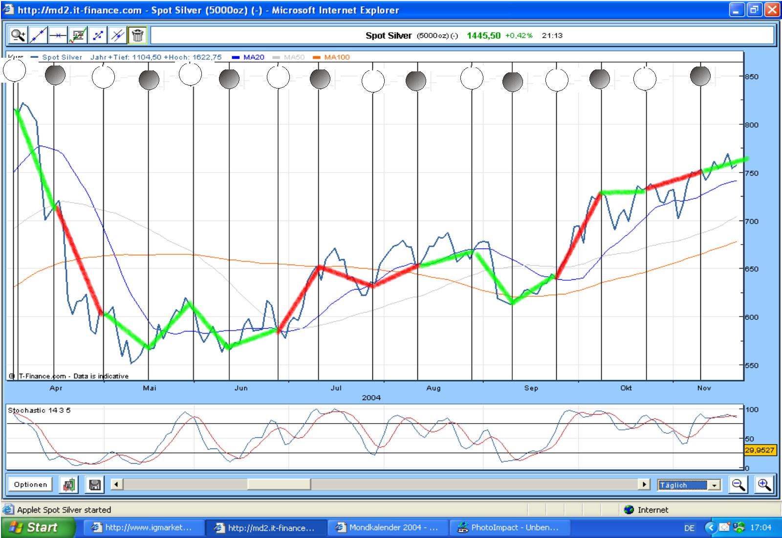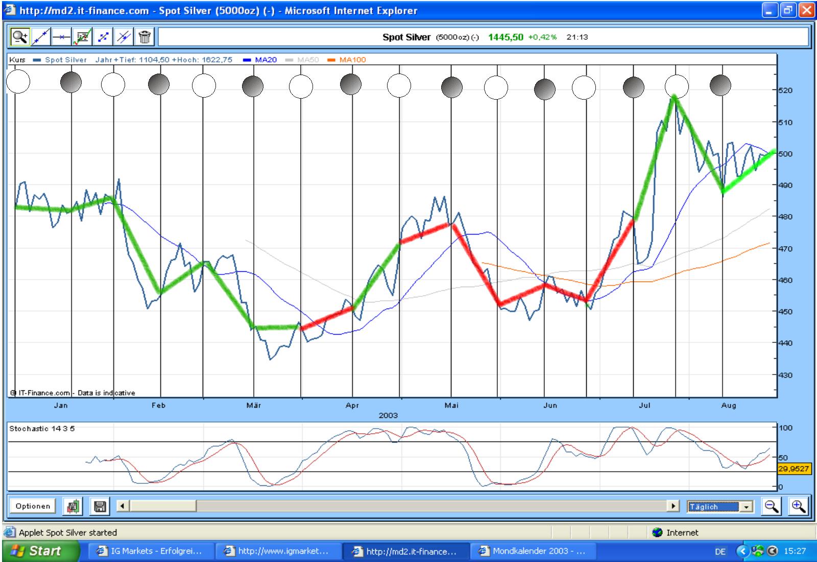 ...Da die Korrelation von Silber und Mondphasen statistisch in den letzten beiden ...Jahren signifikant positiv war, bezieh ichs mit ein und mal den Mond dazu :D...