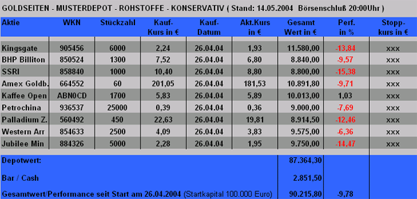 • Das Depot Startkapital beträgt per Saldo 25.04.2004 100.000 €