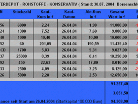 Im Depot selbst gab es nur leichte Verschiebungen vom Kaffee zum Palladium. Ansonsten gab es keine nenenswerten Kursschwankungen.
