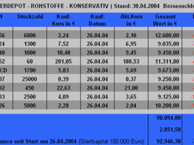 • Das Depot Startkapital beträgt per Saldo 25.04.2004 100.000 €