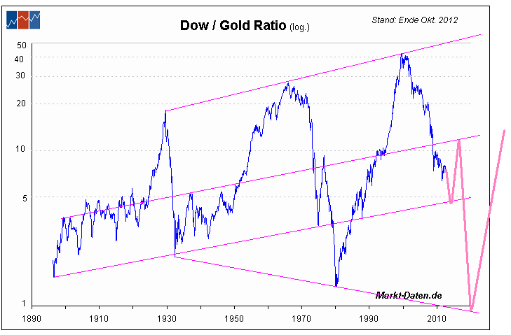 Hier mal zur Abwechslung der Dow Jones in Gold: