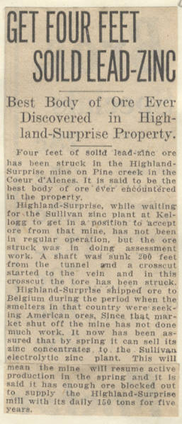 Die Mine Highland Surprise und ihre Properties haben sogar etwas "Gold-Fantasie", da entsprechende historische Daten auf Goldgehalte in dieser Region - neben den hohen Basismetallgehalten - schliessen lassen. Die Hauptausbeutung der Basismetallerze Erze dort fand ca. zwischen 1900 und 1950 statt. Mit zwischenzeitlich starkem Einbruch in der Wirtschaftsdepression der Dreissiger Jahre, allerdings.