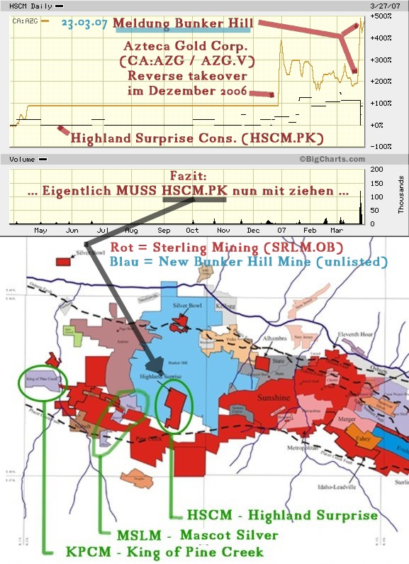Es könnte also gut sein, dass ein Teil der voraussichtlich kommenden Drilings innerhalb der nächsten fünf Jahre auch auf dem Property der Highland Surprise Consolidated Mining Company (HSCM) stattfinden wird!