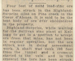 Die Mine Highland Surprise und ihre Properties haben sogar etwas "Gold-Fantasie", da entsprechende historische Daten auf Goldgehalte in dieser Region - neben den hohen Basismetallgehalten - schliessen lassen. Die Hauptausbeutung der Basismetallerze Erze dort fand ca. zwischen 1900 und 1950 statt. Mit zwischenzeitlich starkem Einbruch in der Wirtschaftsdepression der Dreissiger Jahre, allerdings.
