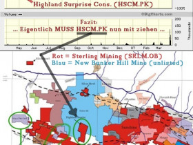 Es könnte also gut sein, dass ein Teil der voraussichtlich kommenden Drilings innerhalb der nächsten fünf Jahre auch auf dem Property der Highland Surprise Consolidated Mining Company (HSCM) stattfinden wird!