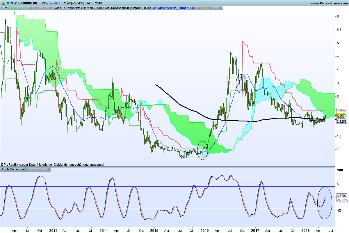 • In dem zweiten chart (prorealtime) müßte doch mit etwas Glück dieser Supertrend auch so langsam von rot nach grün umspringen analog zur markierten Situation Anfang 2016. Es gibt da sicher noch andere mir nicht bekannte Kriterien, die mit einfließen. Ist auf jeden Fall ein interessanter Vergleich.