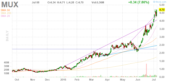 Schon seit Monaten ist MUX in bestechender Form, heute mit weiterem Mehrjahreshoch mit momentan 4,08C$$