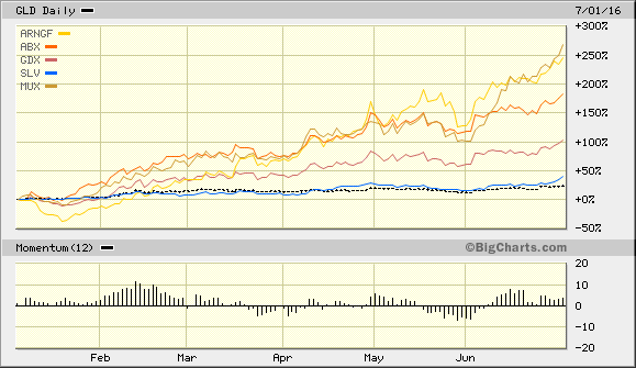 ChartVergleich mit Gold, Silber, GDX, Marktführer ABX und AR, letztere mit großem Turnaround.