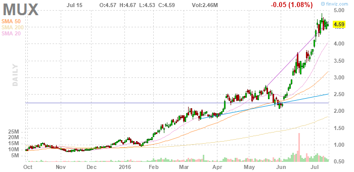 Schon seit Monaten ist MUX in bestechender Form, heute mit weiterem Mehrjahreshoch mit momentan 4,08C$$
