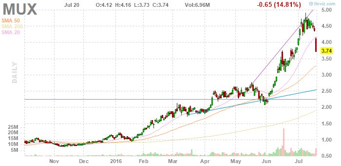 MUX mit fast beängstigender Kursentwicklung, sh.Chart. Diese erinnert an die fabelhafte von Harmony / HMY zuvor, die aber dann abbrach und in Konsolidierung überging.
