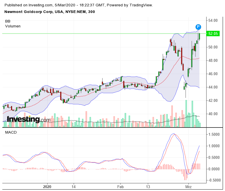 Goldcorp (NYSE:GG), which is being bought by Newmont, opens -2.9%.