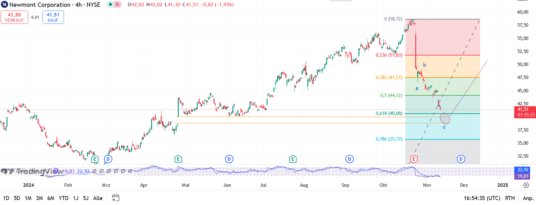 Alles anzeigenNewmont macht in aller Eile weiter in der 2er Korrekturwelle !