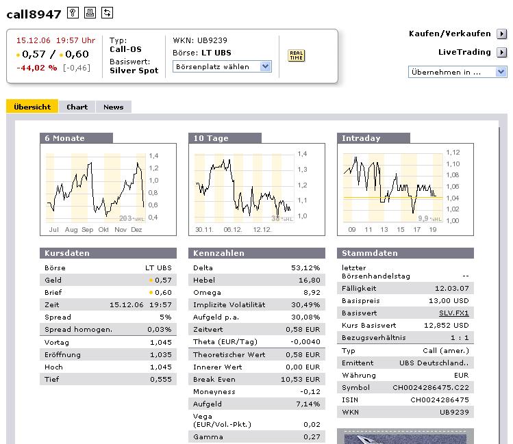 von UBS, die haben moderaten Aufschlag, ok-spread und meinen Silber hat niedrige vola, das teilt uns jedenfalls das Black Scholes Modell mit. ABN kann da baden gehen.