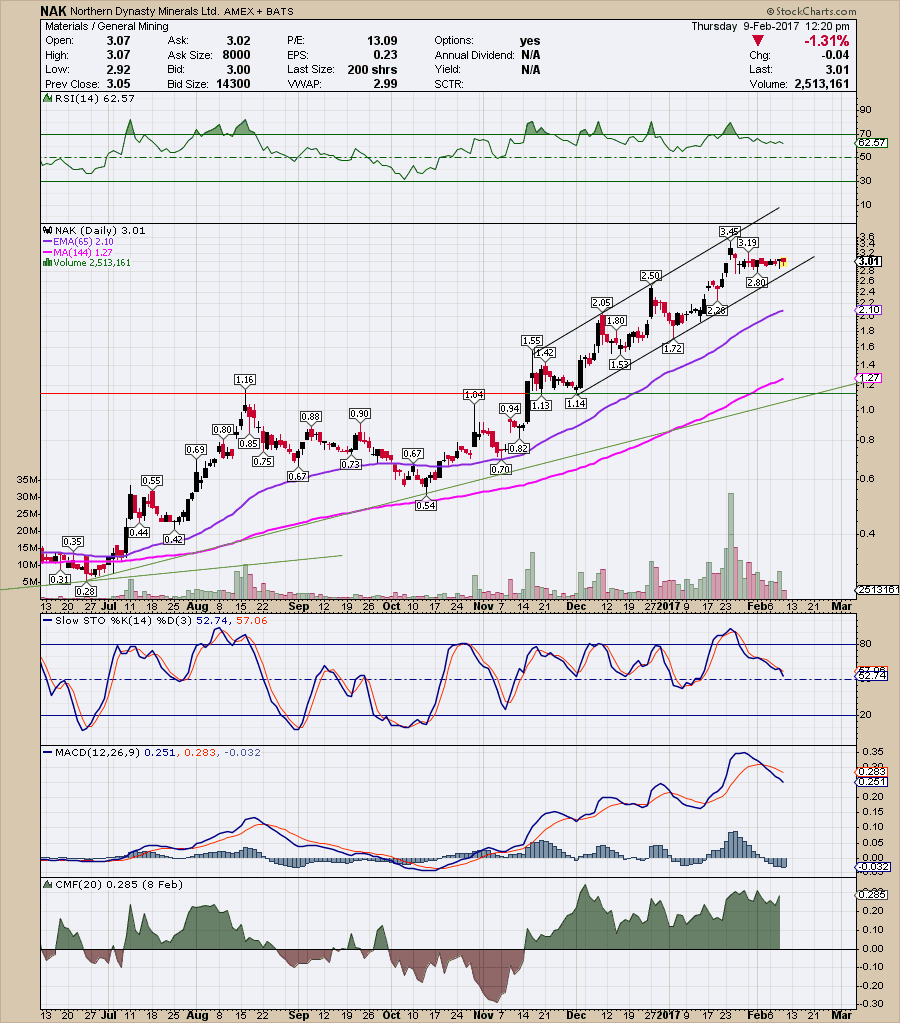 Beim Pebble-Projekt geht es um Metalle im Wert von aktuell ca. 380 Milliarden USD, i.w. Kupfer und Gold. Die Marktkapitalisierung von Northern Dynasty liegt noch bei unter einer Milliarde USD. Ich lasse mich mal überraschen, wie hoch der Kurs noch läuft. Spielraum nach oben - so meine bescheidene Einschätzung - dürfte im Rahmen der "Realisierungs-Spekulation", die wir zur Zeit erleben, noch einiger vorhanden sein.