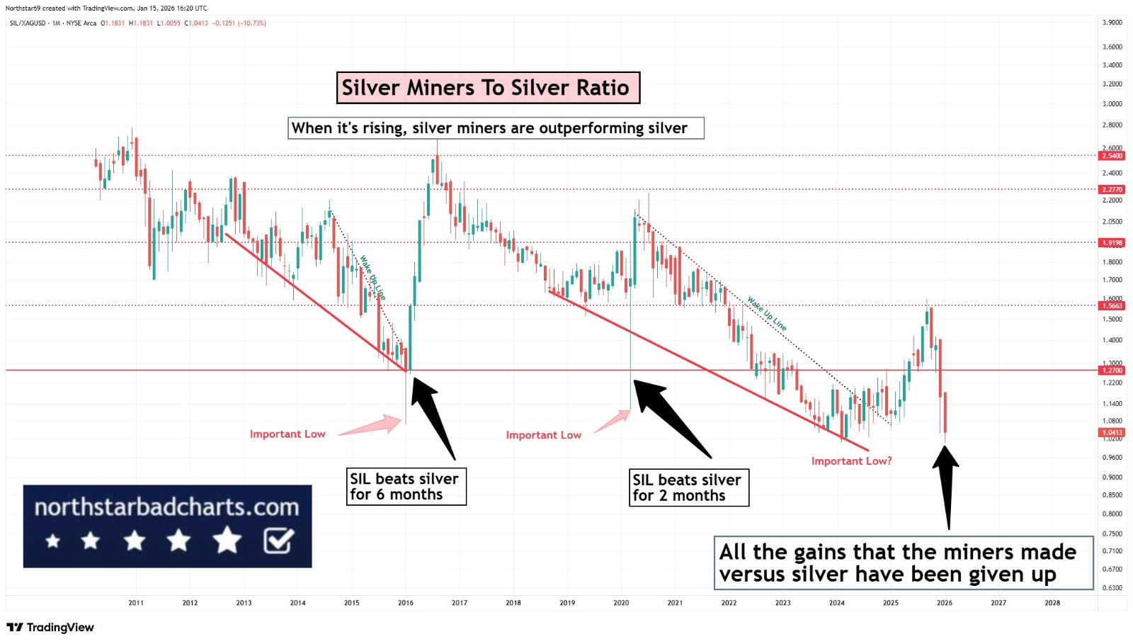 Ich kann mir sogar so einen move vorstellen, das Silber auf 65 oder 72 fällt und die Minen einen hickup nach oben machen (evtl. leicht verzögert, nicht IN der Korrektur, wobei das ein krass bullisches Zeichen wäre)
