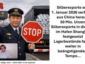 Rechnet man die Steuer heraus, liegt der physische Preis in Shanghai heute fast exakt auf dem Niveau des Weltmarkt-Spots. Das bedeutet, das aktuelle „Shanghai-Premium“ besteht am heutigen Tag fast ausschließlich aus der eingepreisten Steuer. In den vergangenen Wochen (Anfang Januar 2026) lag dieses Premium teilweise sogar $8,00 bis$ 10,00 über dem steuerbereinigten Weltmarktpreis, da China Exportbeschränkungen erlassen hat.