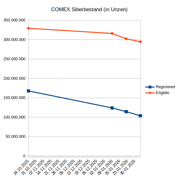 Und: Bei schon jetzt 132.630.000 für Mai 2026 und dann noch vielen weiteren Futures aus dem März... so wird die COMEX im Mai blank sein (siehe Bestandsdiagramm).