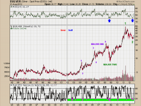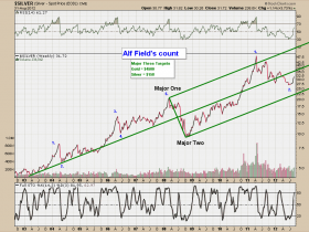 Hier ein 10 Jahreschart mit einem großen Trendkanal aus einem amerikanischen Blog. Mit der Betrachtungsweise des großen Elliotter Alf Field, der Gold 4500 $ prognostiziert, könnte Silber (mind.) etwa 160 $ erreichen.