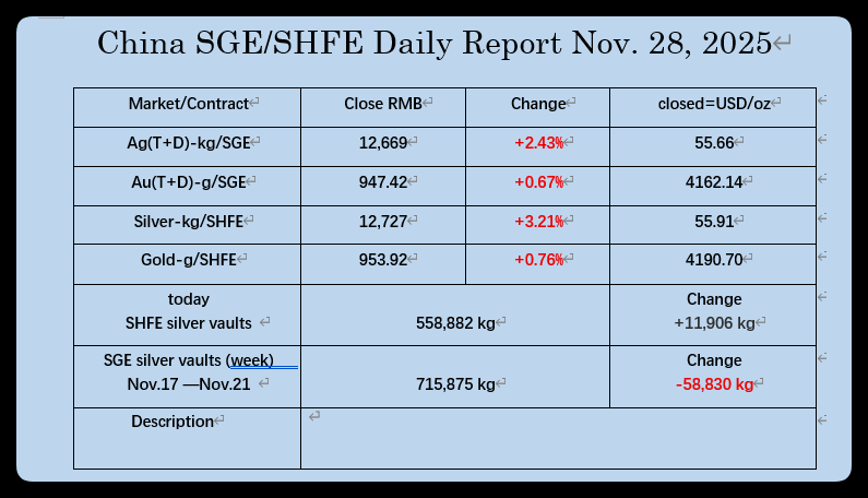 Nov. 28, 2025, the market data on SGE/SHFE. The silver closed ATH.!!!
